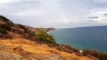 Retenons celui , Minoen, de Pyrgos-Myrtos, au-dessus de Myrtos , dans la lumière orange du soleil qui décline vite, à cette période de l’année. Un site peu fouillé, un amas de pierres, mais on reconnait des dallages, des marches d’escaliers, des pierres de construction, plongeant dans la mer de Lybie, ici encore !