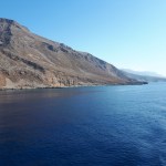 Embarquement à Chora Sfakion en ferry, avec la voiture, jusqu’ à notre destination à Palaiochora, avec une escale à Rouméli puis à Sougia. Le soleil se couche au cours de la navigation, et nous découvrons du ferry, les mille lumières de Palaiochora, tandis que le pilote diffuse une bande son des vieux tubes des années 70 !