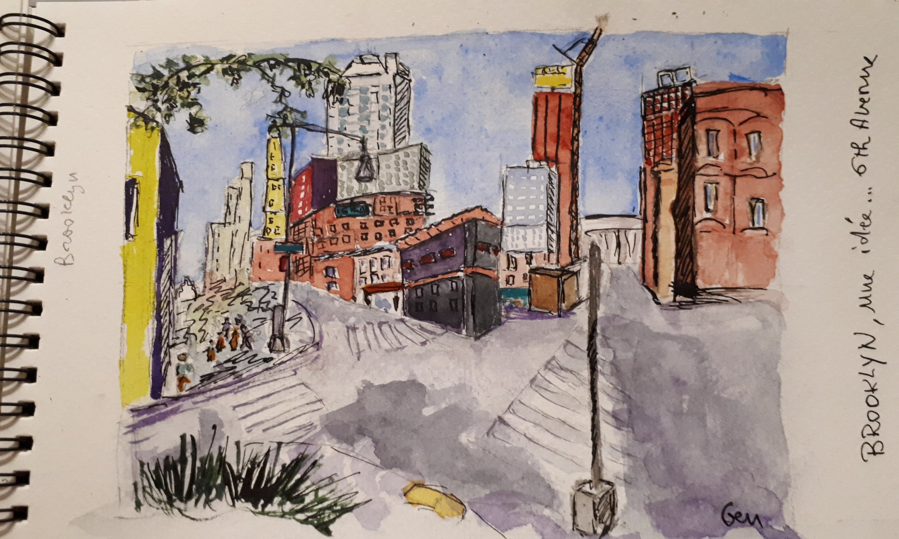 Travaillons sur Google Maps, avec des propositions de liens, comme si nous marchions dans les rues, levions la tête, tournant sur nous mêmes ! Arrêtons – nous où nous voulons pour croquer un paysage urbain, comme si on y était ! Nous avons aussi la possibilité d’utiliser une photo de notre propre voyage…