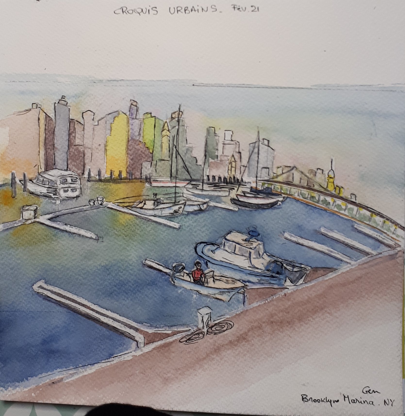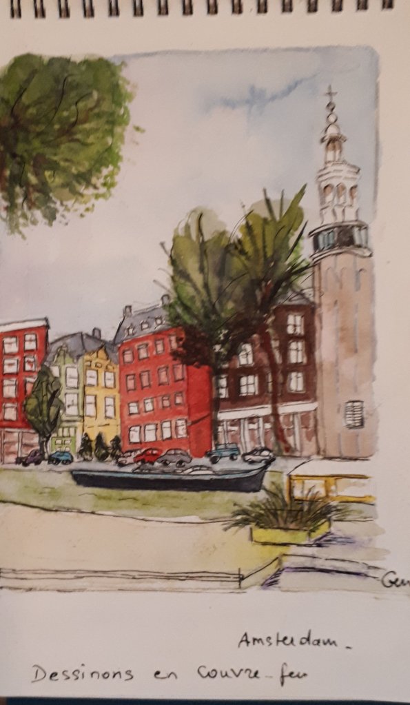 Un nouveau défi lancé par Joëlle S. Dans le cadre de notre atelier carnets de voyages au Musée Maritime, après le carnet en confinement, un carnet de croquis et aquarelle avec cette douce injonction « Dessinons en couvre-feu » , continuons à nous entraîner, à nous motiver , à créer.