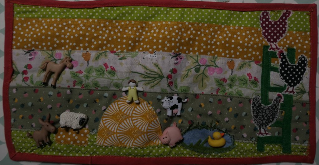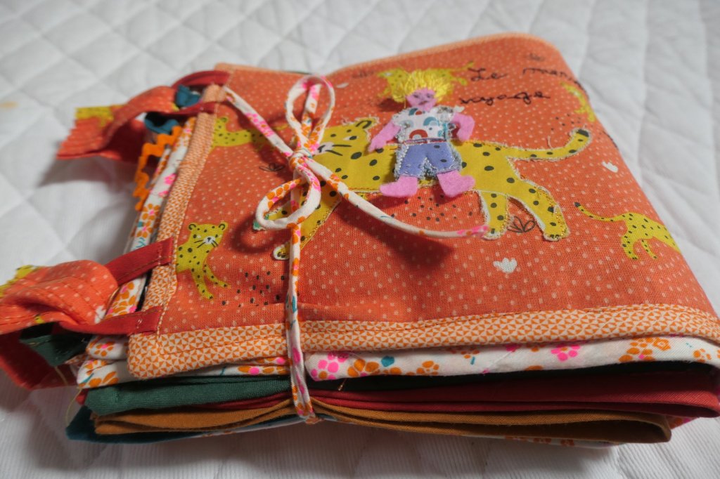L’idée m’est venue de fabriquer pour mon sixième petit fils à naître, un livre en tissu comme on en trouve dans les librairies. L’idée oui, mais je ne trouvais pas très beaux la plupart des ouvrages en question, je voulais de la couleur, franche et fraîche, de la poésie, un vrai beau travail sur lequel me concentrer dans l’attente.