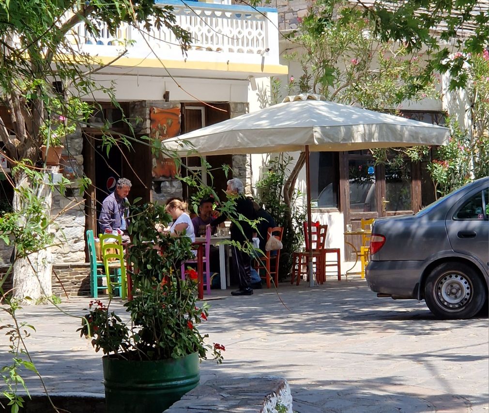 Un dimanche après midi à partir de 16h et jusque tard dans la nuit, ils ont invité un groupe de deux musiciens Ikariotes , un guitariste chanteur et un joueur extraordinaire de Bouzouki. Attablés tout près de nous, ils jouent, mangent et boivent de l’eau de temps en temps sans arrêter leur musique 🎶