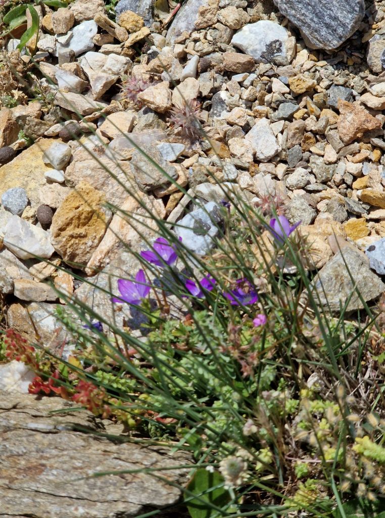 Le temps de s’arrêter pour faire une photo ou deux, je marche sur le sol pierreux, où poussent de toutes petites fleurs délicates, campanules mauves après l’infiniment grand, l’infiniment petit !