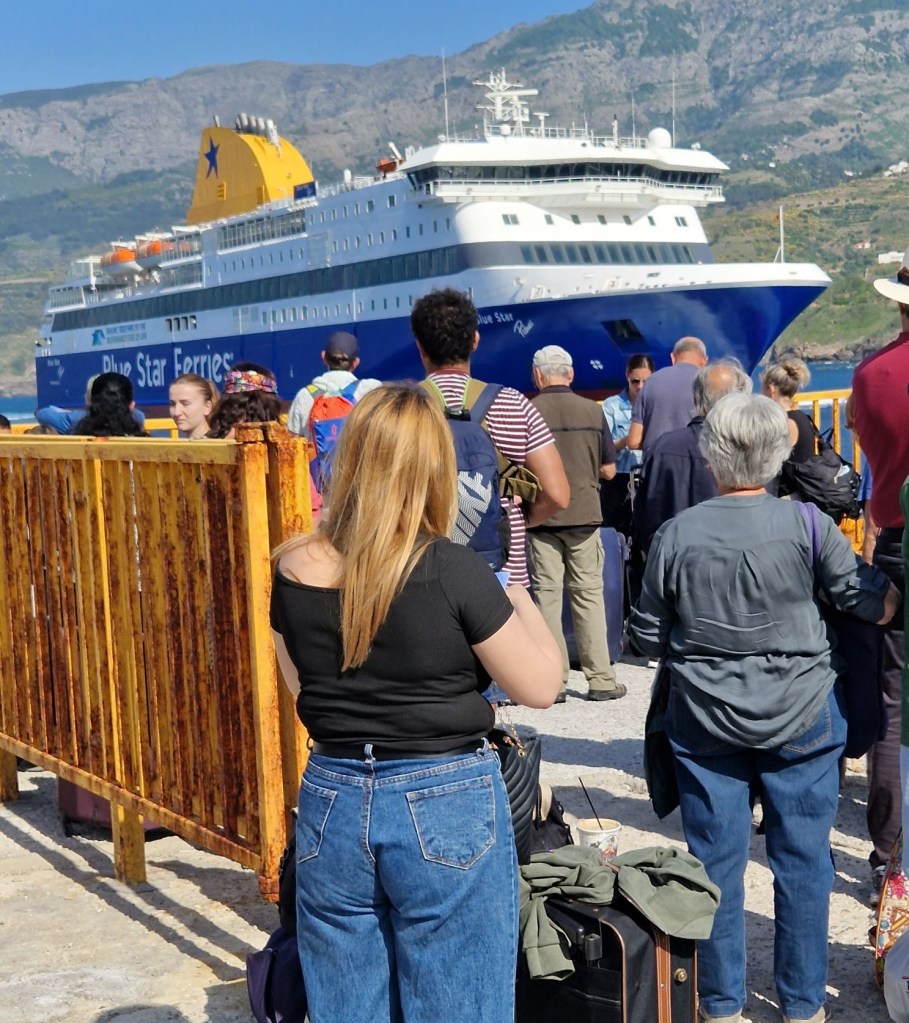 Le séjour touche à sa fin, nous partons demain en taxi avec Zacharias , pour Evdilos tout au nord de l’île où nous attendrons notre bateau Le Blue Star qui vient de Tessalonique et part pour le Piree, il nous débarquera à Mykonos. Et nous rejoindrons Délos le lendemain en bateau aussi , mais un plus petit .