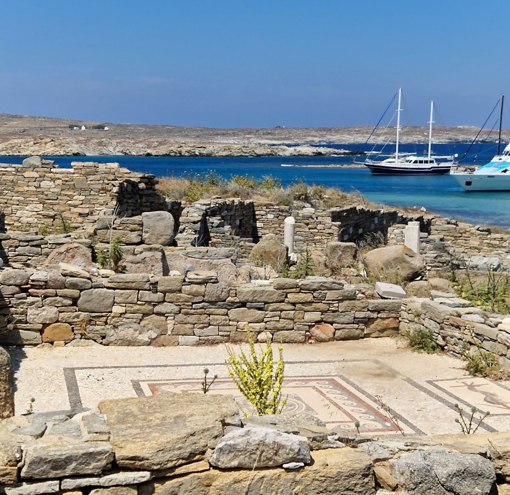 De fil en aiguille, l’itinéraire nous a emmenés en avion , à Athènes où je voulais rencontrer Liza pour de vrai après une dizaine d’années d’amitié via nos blogs respectifs et Facebook . À Ikaria , pour ses sources chaudes et ses thermes naturels pour rejoindre Delos, en ferry, via Mykonos, la seule façon de l’aborder . Des détours comme une petite Odyssée.