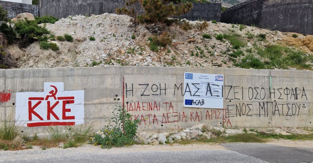 Les graffitis nombreux du parti communiste grec à Ikaria