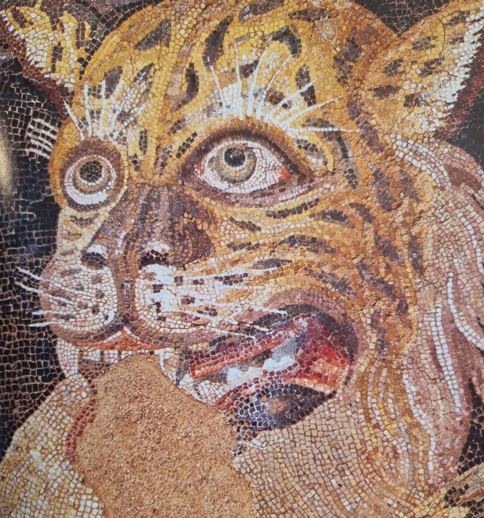 Une maison à deux étages, conservée dans sa partie basse. Dans la cour accessible, un péristyle avec de belles colonnes et une mosaïque au sol représentant Dionysos assis sur un tigre