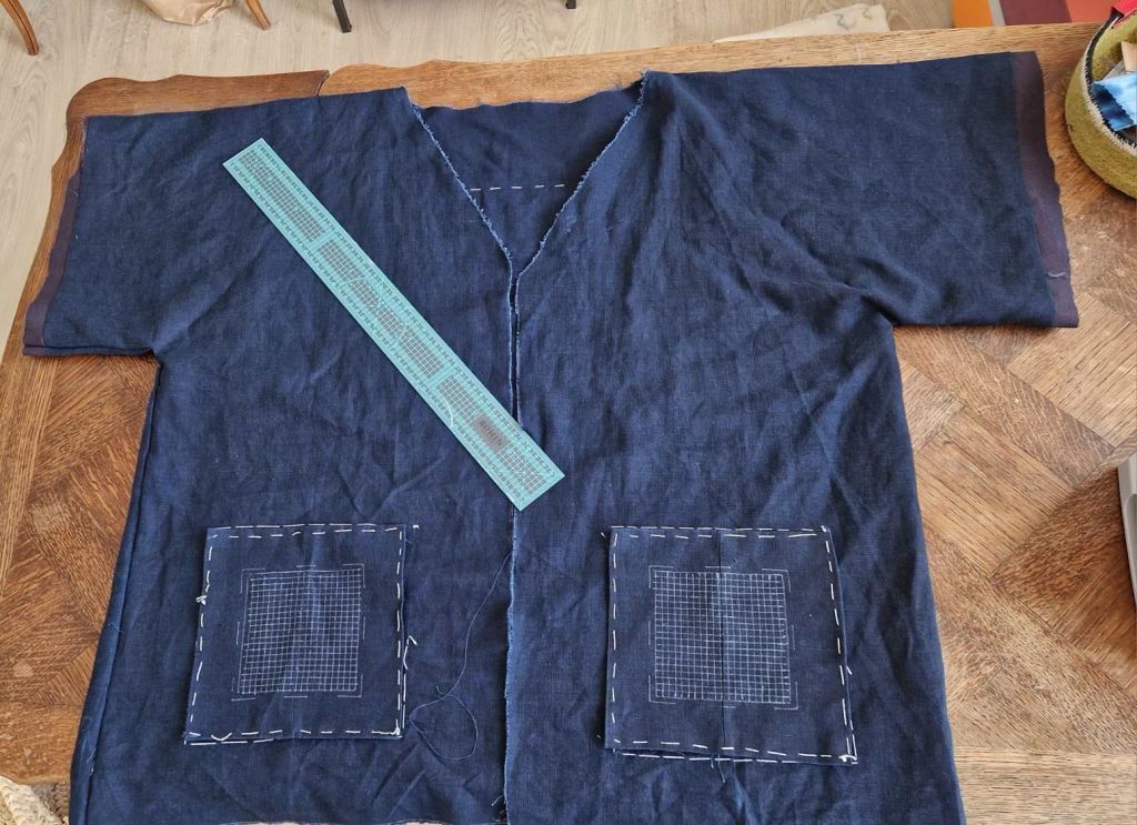 Je fais donc d’abord un kimono avec tissu en lin indigo commande sur internet au Japon !