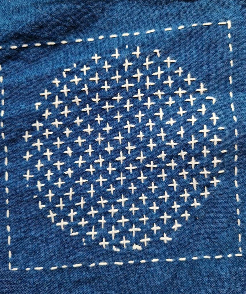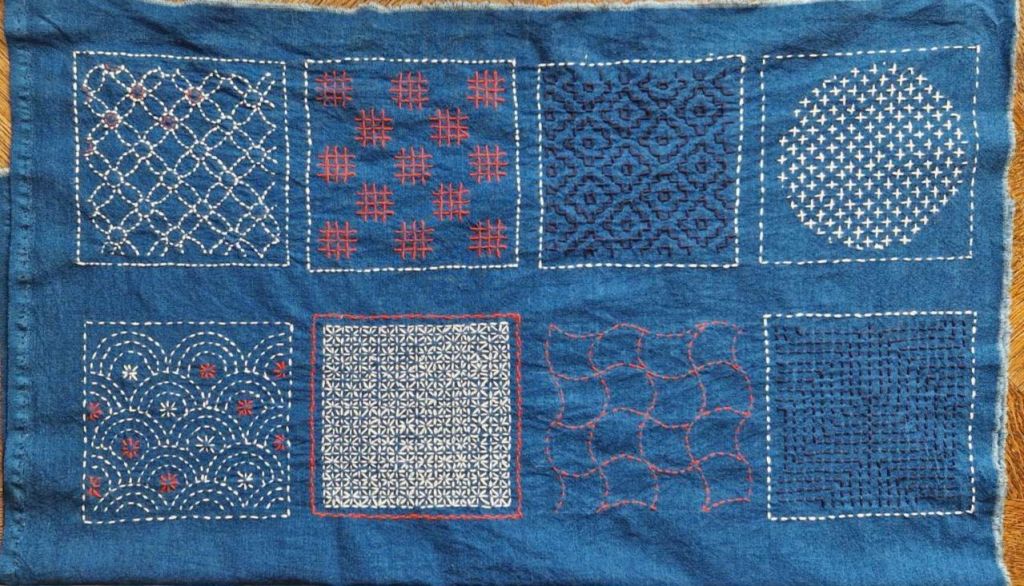 La broderie japonaise Sashiko est addictive avec ses « petits points piqués » au fil de coton sur coton ou lin indigo.