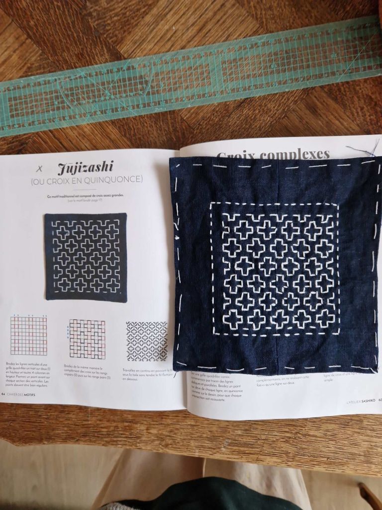J’ai trouvé inspiration et apprentissage dans un livre « L’atelier Sashiko » de la talentueuse Zelia Smith.