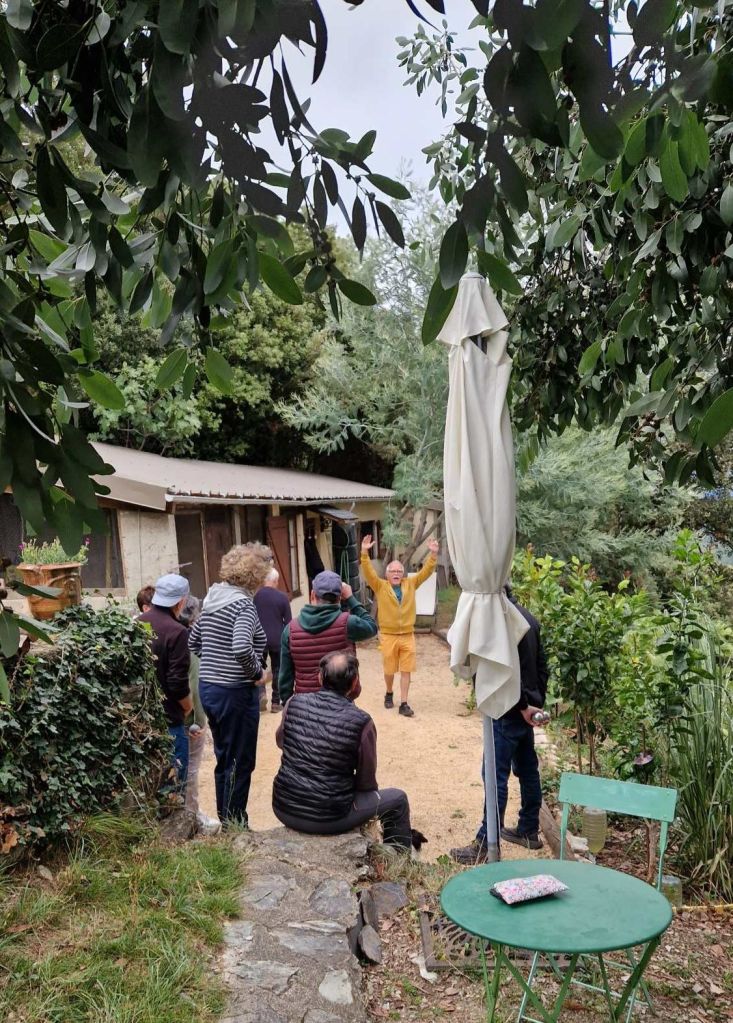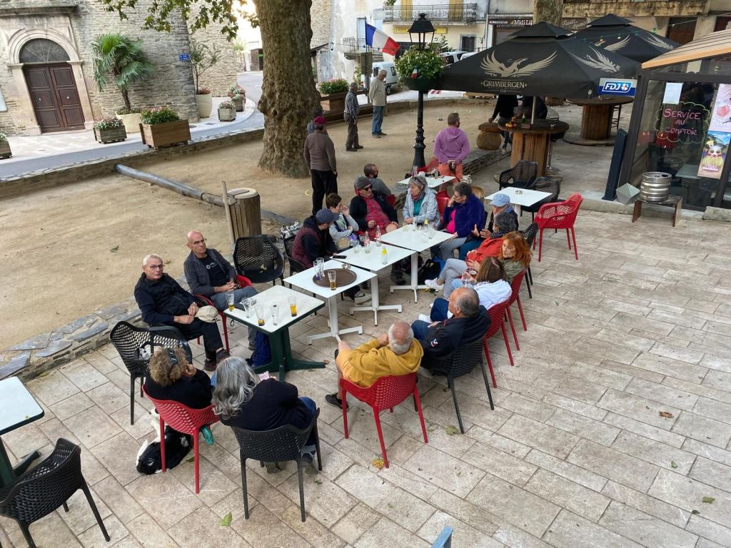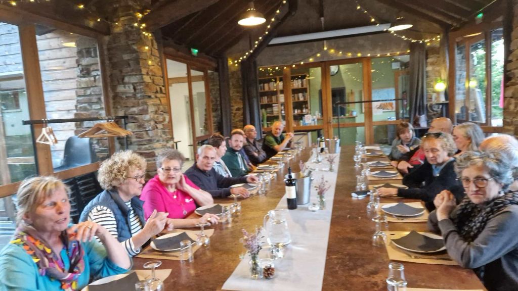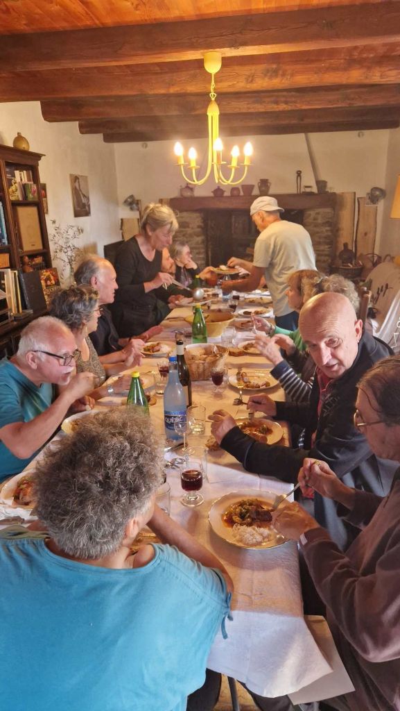J1 . Nous nous retrouvons sur le site du Village des gîtes Cevenols à Saint-Roman-de-Tousque, de tous les points cardinaux, St Étienne, Chambéry, Versailles, La Rochelle, St Yrieix-la-Perche, Morangis, Le Bourget-du-Lac…Pour un premier repas délicieux et chaleureux !