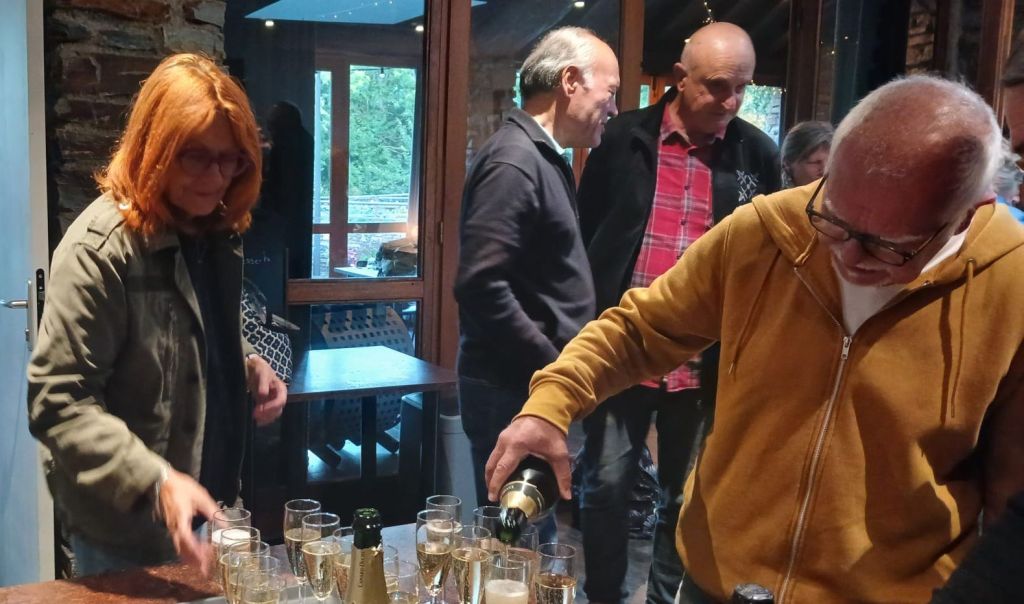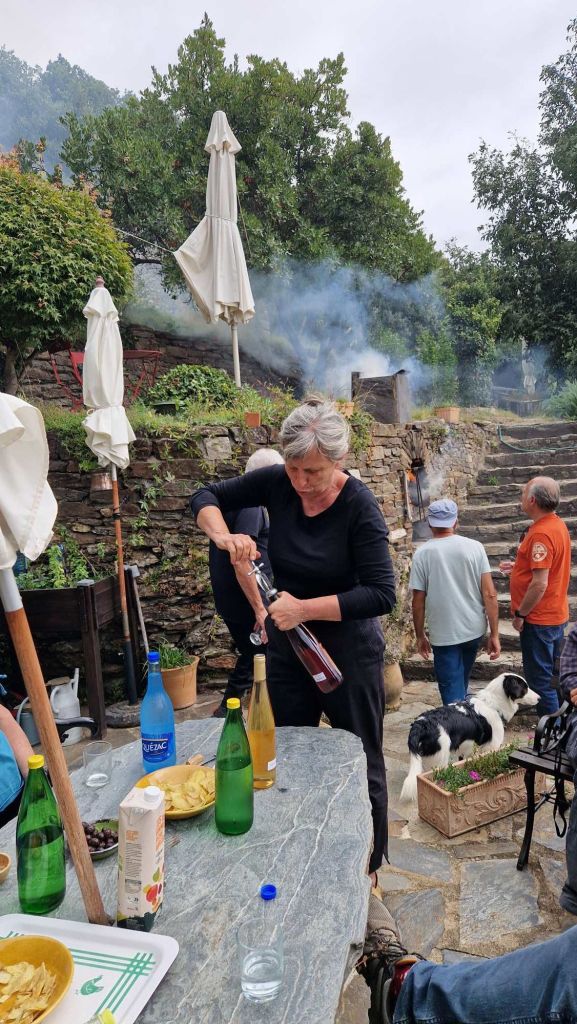 Retour en caravane de voitures aux gîtes cevenols pour fêter au champagne l’anniversaire de Josiane .