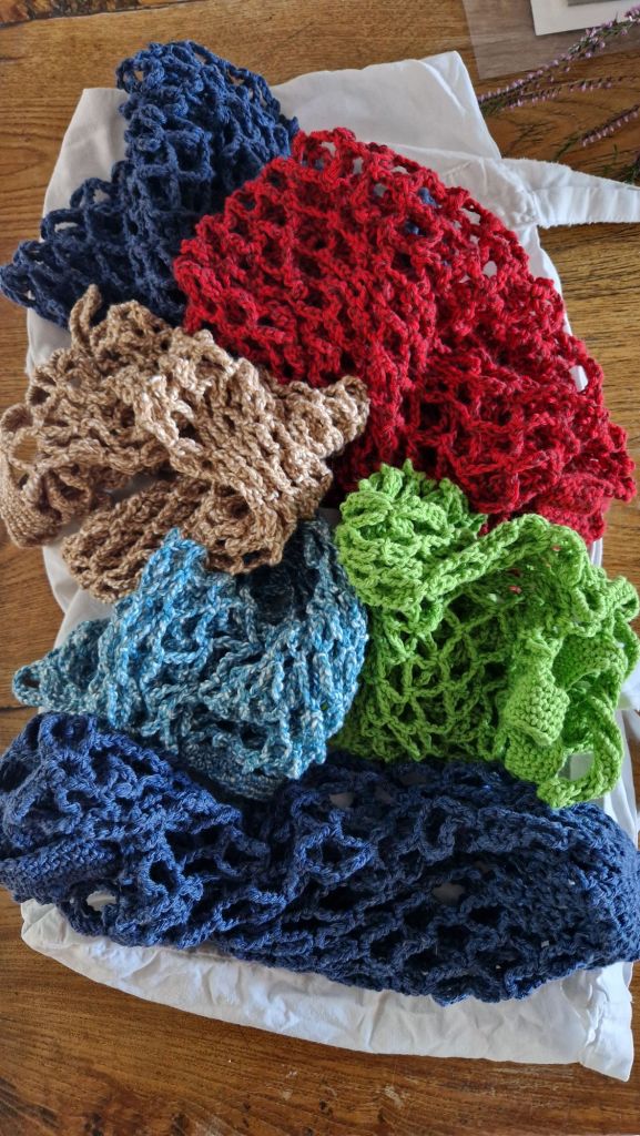 Et notre Penelope dévoile son jeu , elle ne tapait pas sur les bambous, mais crochetait à toute allure des filets en cotons multicolore qu’elle nous offre maintenant ! Émotion ! Merci Pascale !