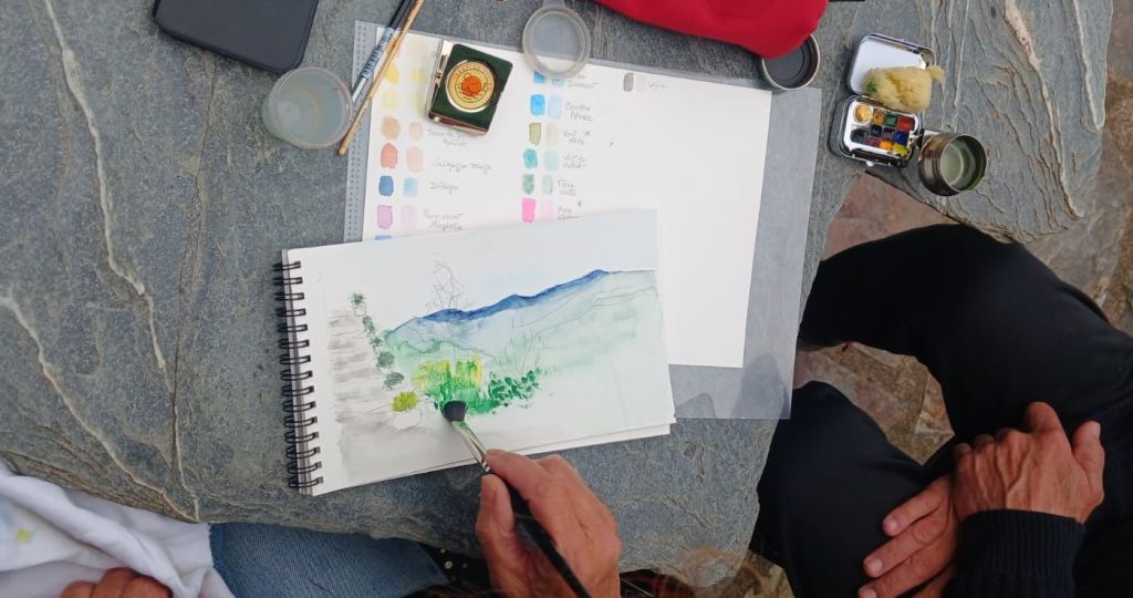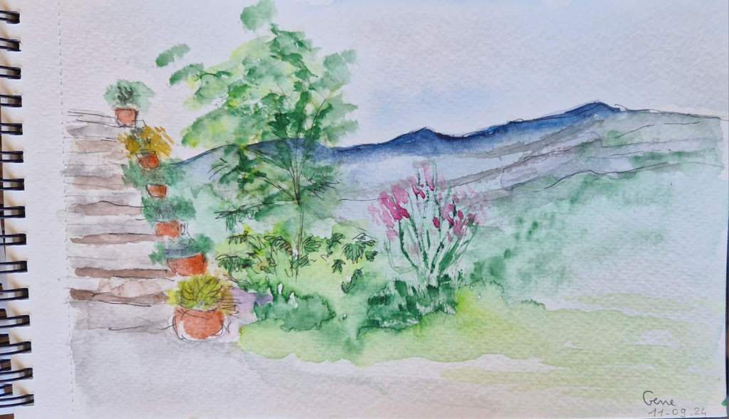 alors là , chapeau ! Quand on aura un petit blues d’hiver , ou qu’on aura un petit détail oublié , ou juste qu’on voudra se remémorer ces chouettes journées : plongeon direct dans le blog de Geneviève ! Avec , en plus 2 aquarelles légères pour rêver . Merci Geneviève , plein de bisous