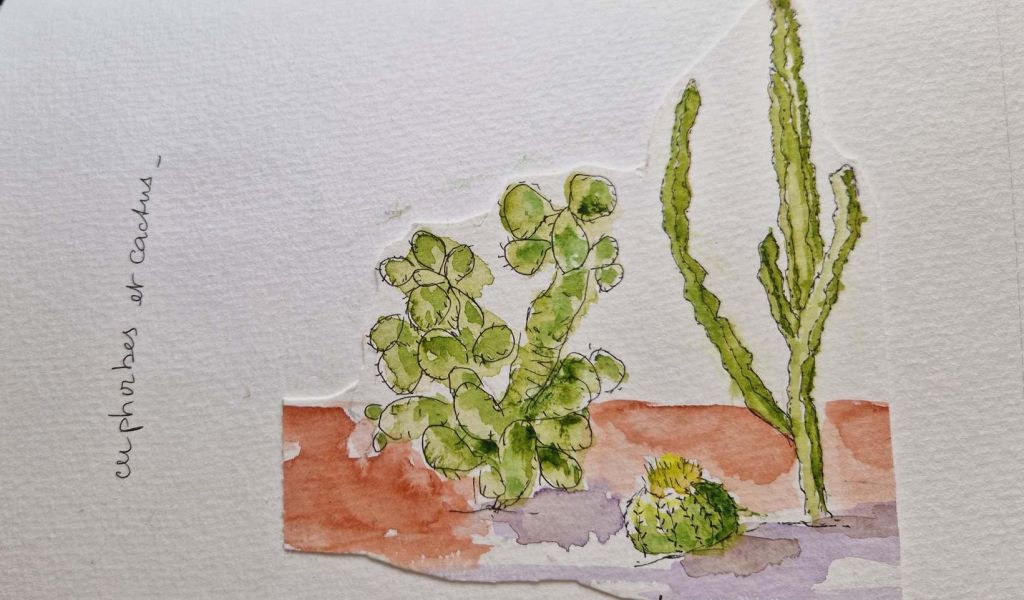 Les couleurs des cactus, euphorbe et palmiers…Tous les verts.