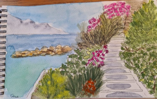 Nous sommes encore ici, entre mer et montagne après 3 semaines en immersion. Η Ελλάδα σ'αγαπώ ! Face à la mer du haut de notre terrasse, j'aurais pu plonger directement mes pinceaux dans la mer rose, bleu de cobalt, bleu manganèse, vert turquoise, bleu marine...Et le grand bonheur de partager tout ça avec nos enfants … Continuer la lecture de Les couleurs de mon été grec, aquarelles et photos, Août 2019, golfe de Corinthe.
