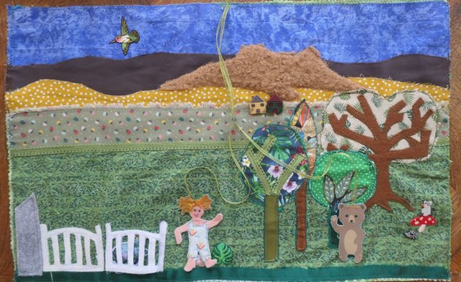 La maison des papillons Tapis de conte, la maison des papillons Création textile de Gene. Cette petite couture pour Julian, le petit fils de ma cousine Annie. Inspiration libre, réaliste un peu, poétique beaucoup , à partir des indices donnés par Annie dont j'ai retenu, "maison", "coucher", "personnages", "jouets", " un chat" ,"un chien ". … Continuer la lecture de La maison des papillons, création textile.